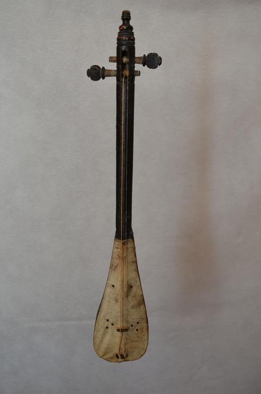 Corps : caisse de résonnance monoxyle piriforme peint en noir.