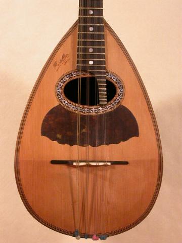 Head veneered of ebony, nickeled machine head with bone buttons.