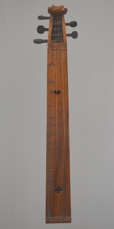 Tavola di noce, due fori armonici, uno a forma di cuore, l'altro a forma di quadrifoglio.